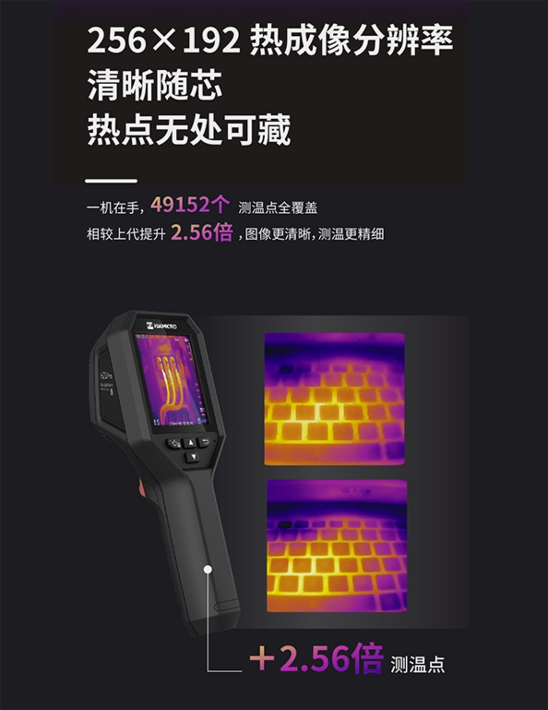 原始分辨率256 × 192,高靈敏度氧化釩非制冷探測器;
