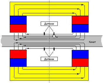 俄羅斯INTROS鋼絲繩檢測都是采用電磁檢測的方法,通過電磁傳感器將鋼絲繩充磁,對鋼絲繩缺陷處的漏磁和磁通量的信號變化來檢測鋼絲繩的損傷如:斷絲、磨損、腐蝕和變形等缺陷,確保及時發現問題和更換。