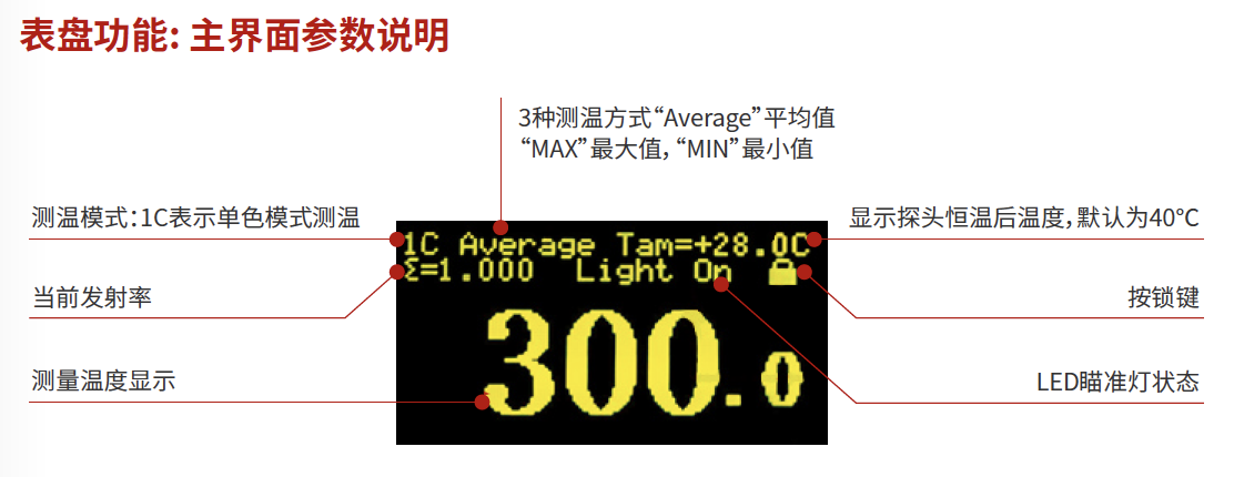 單色高溫計的理論基礎是普朗克黑體輻射定律,通過測量目標物某一狹窄波長范圍內輻射能量的總和,直接計算目標溫度。單色高溫計測量的是一個區域內的平均溫度,測量值會受發射率變化、鏡頭污染程度、環境干擾物以及背景輻射等因素的影響,使用時需要待測目標完全覆蓋視場光斑來保持測溫數據的精準。
