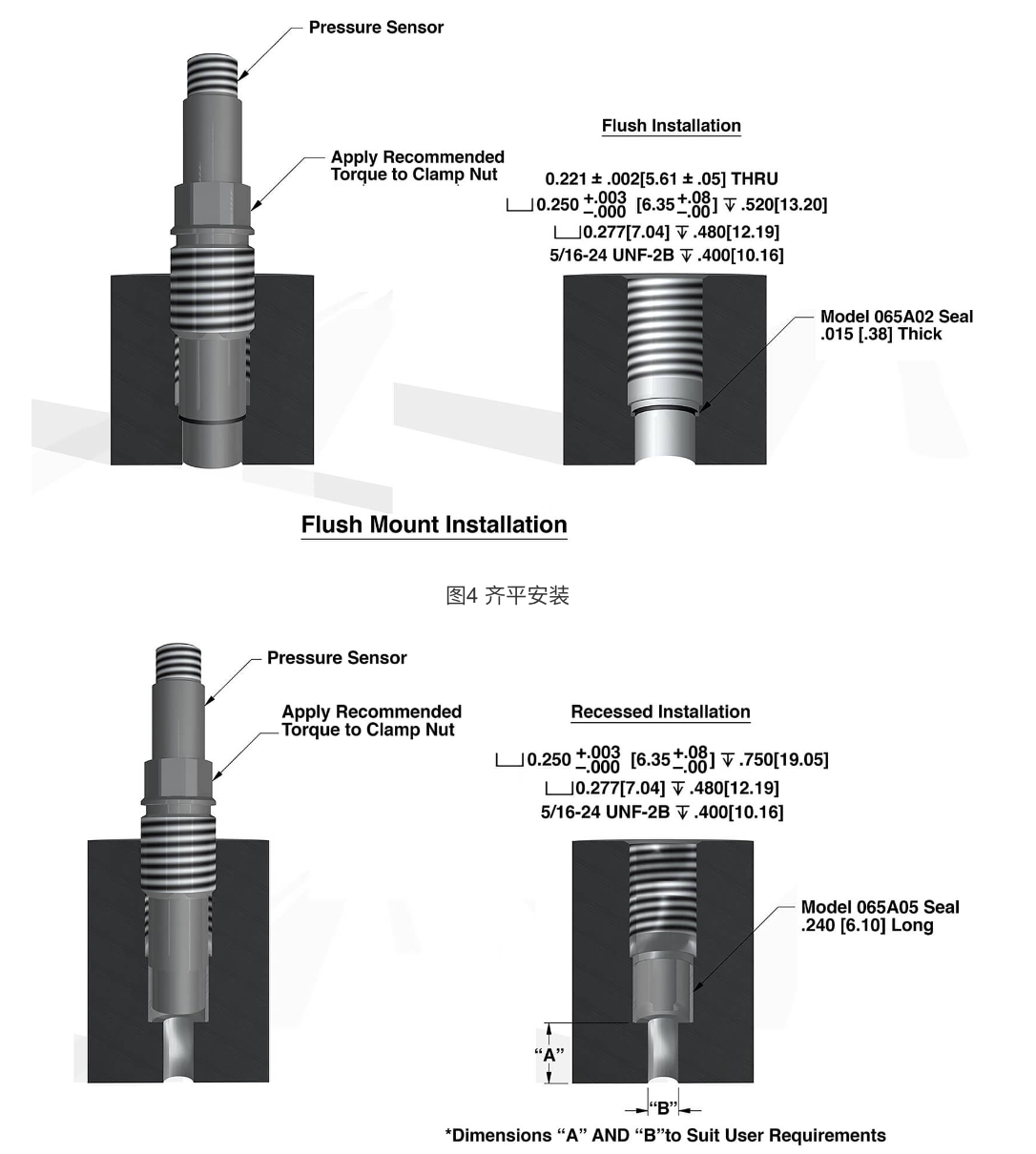 壓力傳感器的精密安裝對于**測試是至關(guān)重要的。每次安裝前請確認(rèn)傳感器說明書中的安裝尺寸圖,當(dāng)您有疑問時,請聯(lián)系PCB?工程師取得詳細(xì)的安裝指南。使用精密的機(jī)加工設(shè)備來安裝螺紋孔,并且使用推薦的安裝扭矩。請使用PCB?傳感器提供的安裝硬件,我們還提供不同標(biāo)準(zhǔn)的螺紋適配器來簡化一些傳感器的安裝。